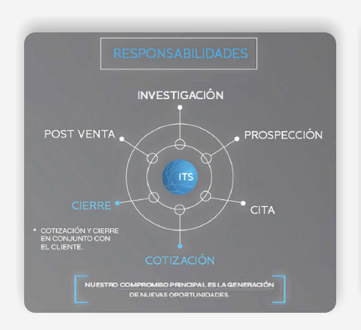 Estructura de trabajoToda la estructura de ITS supervisando tu empresa.Todos los agentes detectan oportunidades para todas nuestras cuentas, lo que nos asegura un mayor número de oportunidades.